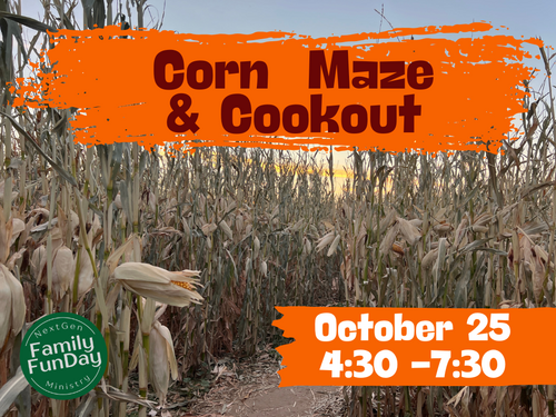 Students are invited to join us for our annual trip to MT Corn Maze! We will be gathering between 4:30 - 5 at the "Chicken Coop" for a cookout and conversation, followed by a ride on a hay wagon out to the corn maze, where will "get lost" then find our way out. Hot dog roasting begins at 5 pm. Please bring a side dish to share, a lawn chair and don't forget to dress for the weather and bring a flashlight. Hot Dogs & S'mores provided. Tickets are just $7/person with advanced registration.
