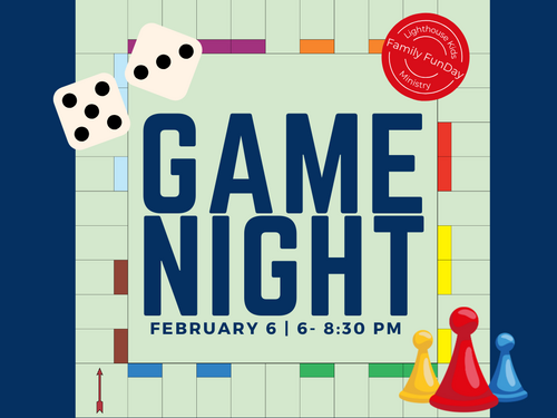 Mark your calendar for Friday, February 6, 6 - 8:30 pm. Lighthouse Kids and their families are invited to join us for a family board game night. Everyone is invited to come and go for as long as you can. Please bring an appetizer to share and your board games. We will have water and lemonade available, but feel free to bring other things to drink if you would like. This is an event for kids and 4 through 6th grade and their families. This is not a drop-off event, however Pier 56 students are able to attend with their leaders.